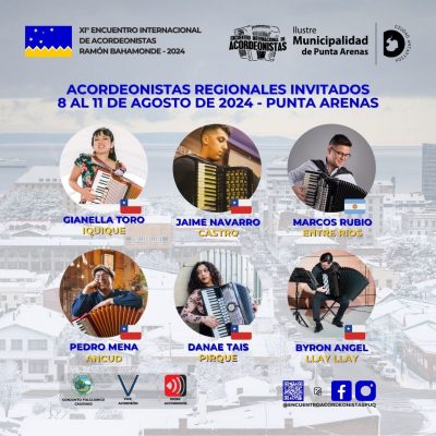 Entre los días 8 al 11 de agosto de 2024, se llevó a cabo en la hermosa y fría ciudad de Punta Arenas, región de Magallanes y la Antártica Chilena, el XI° Encuentro Internacional de Acordeonistas Ramón Bahamonde 2024, por segundo año consecutivo el evento fue reconocido por la Ilustre Municipalidad de Punta Arenas como parte de las Invernadas 2024 de dicha ciudad.