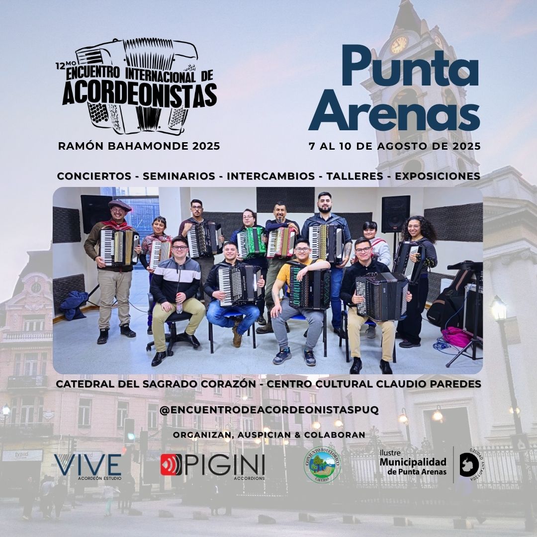 Entre los días 7 al 9 de agosto de 2025, se llevó a cabo en la hermosa y fría ciudad de Punta Arenas, región de Magallanes y la Antártica Chilena, el XII° Encuentro Internacional de Acordeonistas Ramón Bahamonde 2025, por tercer año consecutivo el evento fue reconocido por la Ilustre Municipalidad de Punta Arenas como parte de las Invernadas 2025 de dicha ciudad.