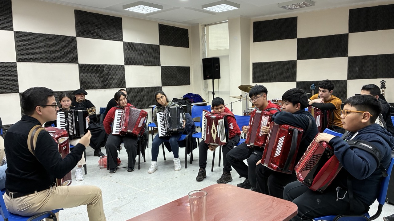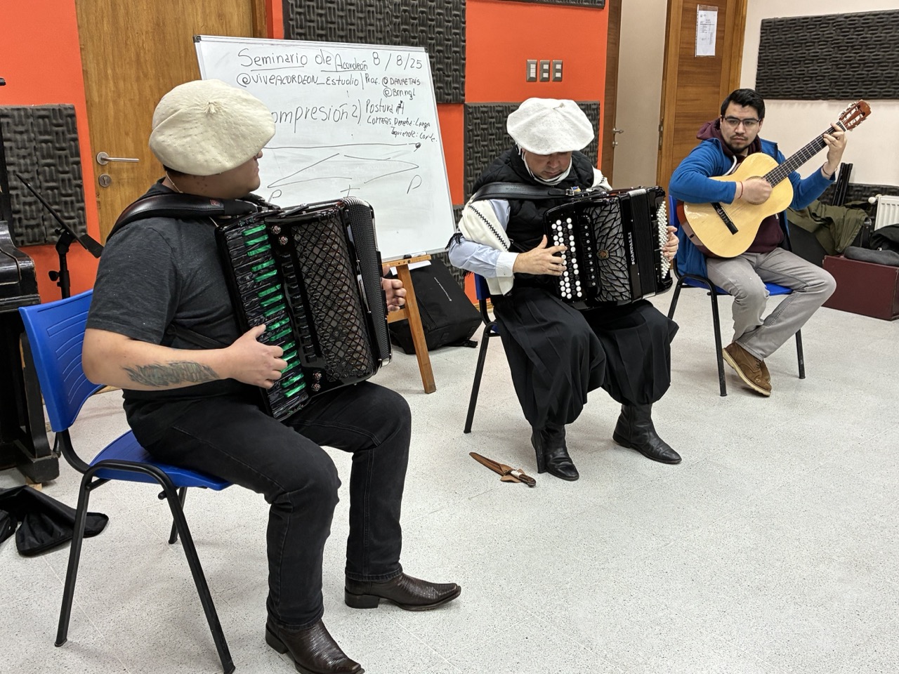 Como el año pasado, la jornadas educativas del acordeón de esta edición se realizaron en las aulas del Centro Cultural Claudio Paredes Chamorro, llevandose a cabo el viernes 8 y sábado 9 de agosto, días que convocaron y tuvieron como protagonistas a la agrupación de niños “Acordeones de Coñab” provenientes de Achao, Quinchao, Chiloé, quienes se interiorizaron sobre el género tan arraigado de la patagonia como el Chamamé a cargo de Miguel Quinchamán y el Maestro Ignacio Porra, así también una masterclass de técnica y estudio a cargo de Byron Angel.